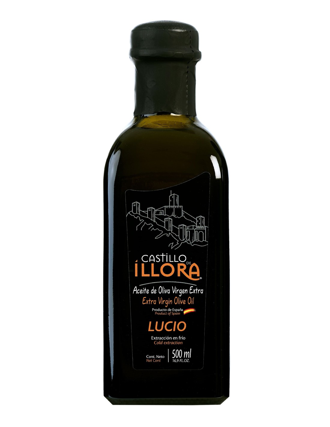 Extra virgin olive oil of early harvest and cold extraction produced in Íllora (Granada) with olives of the Lucio variety.