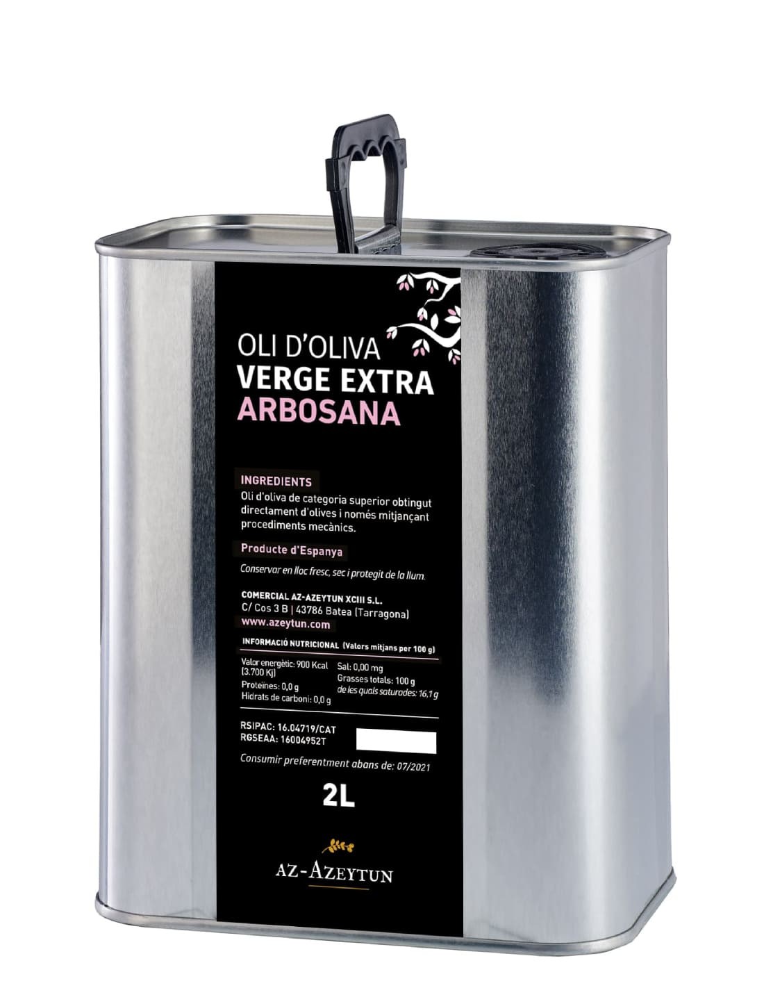 Aceite de oliva virgen extra producido en la comarca de Terra Alta (Tarragona) con aceitunas de la variedad Arbosana.