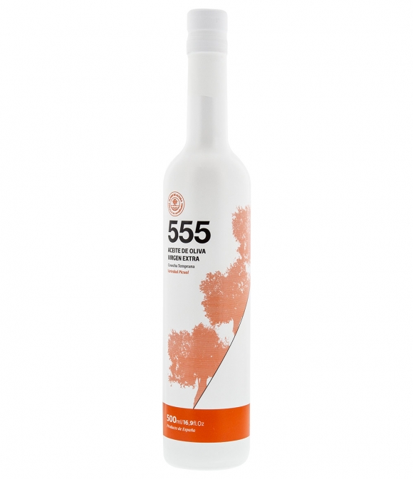555 Picual hat eine intensive und hohe Fruchtigkeit von grünen Oliven. In der Nase ist es ein komplexes Öl mit vielen Nuancen, es hat ein intensives Aroma, das an Olivenblatt, Tomate und leichten grünen Apfel erinnert. Der Eintritt in den Mund dieses Öls ist glatt und sauber, es hat eine ausgewogene und angenehme Bitterkeit und Schärfe, und zur gleichen Zeit markiert es ein Aroma im Mund von Mandel, Artischocke, Blättern und vor allem Tomaten. Sein Nachklang ist angenehm und adstringierend.