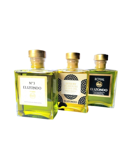 - Natives Olivenöl extra Elizondo Luxury mit natürlichem schwarzen Trüffelaroma und natürlichen schwarzen Trüffelscheiben im Inneren