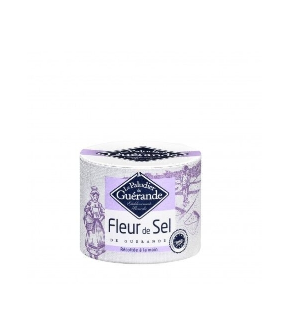 La flor de Sel de Guerande está compuesta de pequeños cristales blancos que se forman en la superficie del agua. Muy rara y de calidad excepcional, esta sal se selecciona a mano como una "flor en el agua" con una herramienta de cosecha de madera. Simplemente drenada al sol, la Fleur de Sel es rica en oligoelementos.