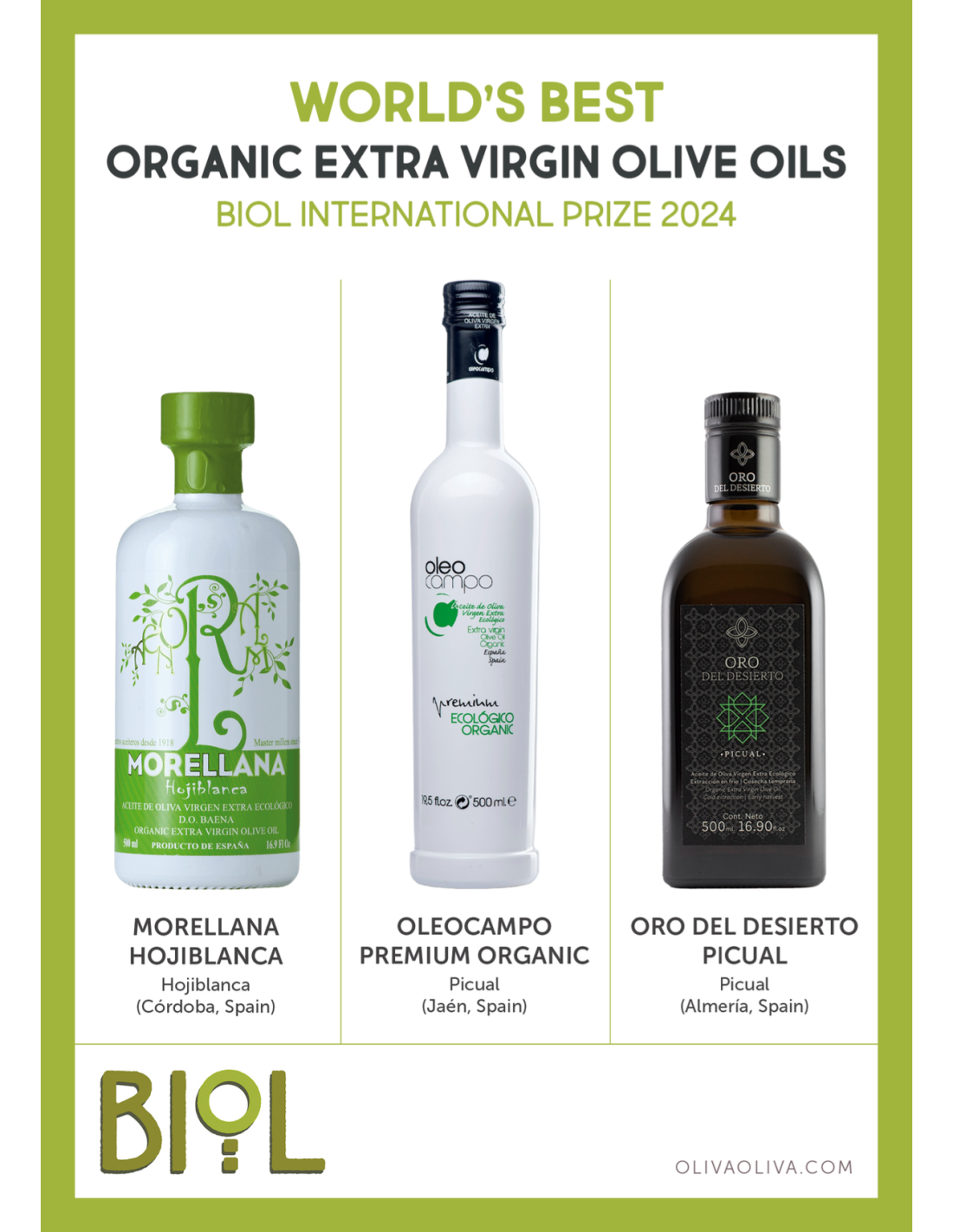 Der BIOL-Preis ist eine der wichtigsten internationalen Auszeichnungen für natives Olivenöl extra, das mit Methoden des ökologischen Landbaus hergestellt wurde. Sie werden seit 1996 jährlich in der italienischen Stadt Andria verliehen und vom italienischen Konsortium für ökologische Produkte unterstützt.