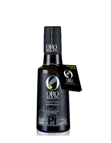 Helle und glänzende grüne Farbe. Es ist ein Öl mit einem intensiven fruchtigen Geschmack von frischer Olive und einer großen Komplexität von krautigen und fruchtigen Aromen mit grünen Bananen, Mandeln und grünen Tomaten.