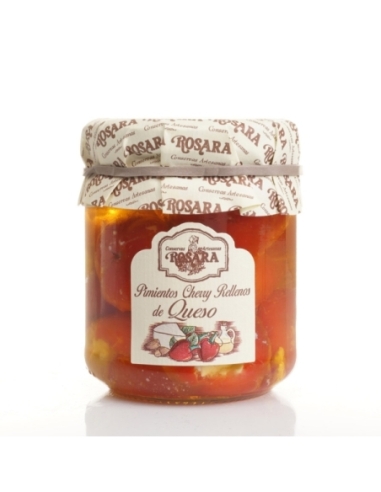The peppers are stuffed with a delicious cream cheese made from cow's milk and topped with a touch of crunchy almonds. The crunchy texture of this preparation is followed by a sweet pepper flavour with a slight hint of spiciness on the finish, all enhanced by the creaminess of the olive oil.