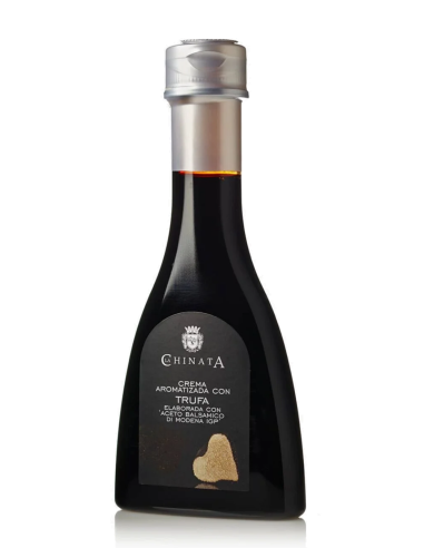 This balsamic cream flavoured with truffle is an ideal complement to give a different flavour to your salads, fruits, ice creams or desserts. Made with Aceto Balsámico di Modena IGP.