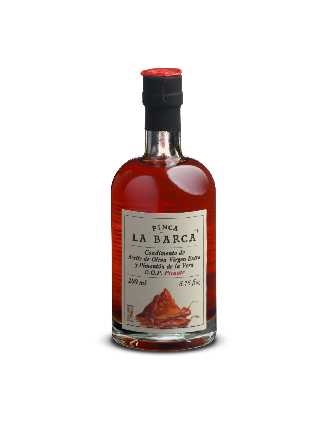 6x Finca La Barca Seasoning of EVOO and Spicy Paprika from La Vera - Glass bottle 200 ml.