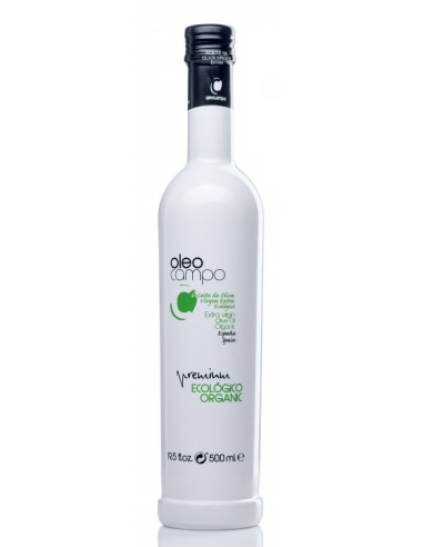 Organic premium extra virgin olive oil of the Picual variety of early harvest and cold extraction produced in Jaén.