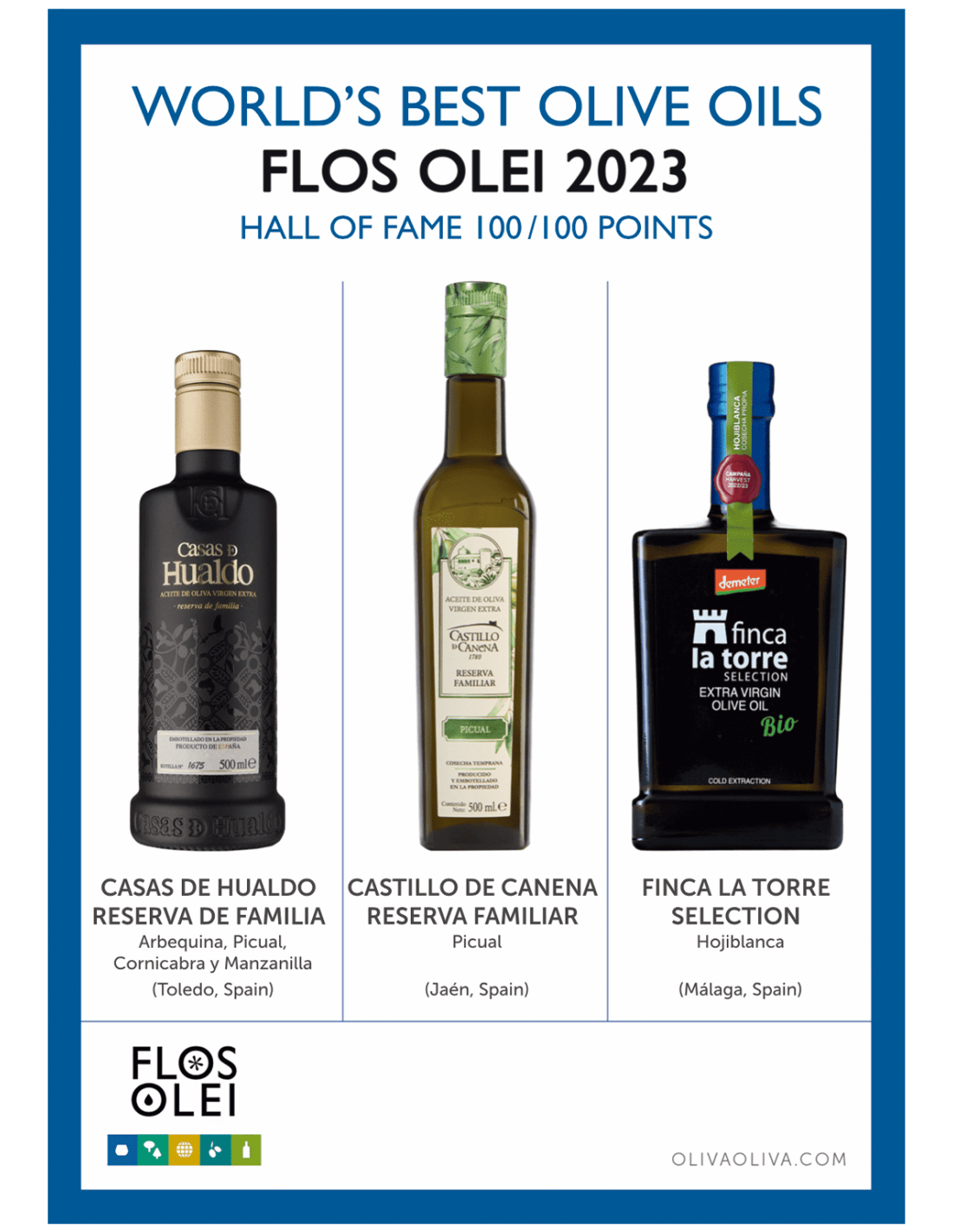 The highest score an extra virgin olive oil can achieve in this prestigious guide is 100 points, placing it in the esteemed Flos Olei Hall of Fame.