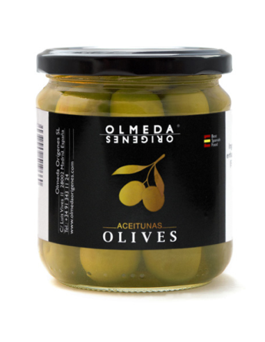 Olmeda Orígenes Manzanilla olives are produced in the warm olive groves of Cordoba, a land with a great tradition in the production of these products. They are made in a simple way, adding water, sea salt and aromatic herbs to enhance their flavour.
