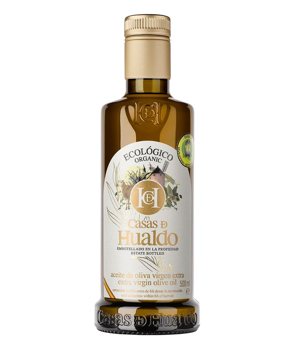 Aceite de Oliva Virgen Extra de Toledo, de alta persistencia. Coupage orgánico de las variedades arbequina y cornicabra, la primera aporta el frutado típico de esta variedad, mientras que la Cornicabra destaca por sus toques verdes y robustos.