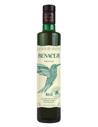 Renacer Néctar BIO es un aceite de oliva virgen extra de categoría superior procedente de aceitunas ecológicas de la variedad Picual de cosecha propia y temprana.