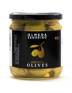 Aceituna natural de la variedad Gordal de Sevilla fermentada en aderezo tradicional sevillano durante 3 meses. En boca se pueden apreciar un ligero sabor a ajo, pimiento o limón. Producto pasteurizado.