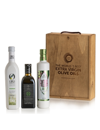 Se presenta en una elegante caja de madera que incluye 3 botellas de 500 ml. y un diploma acreditativo del premio.