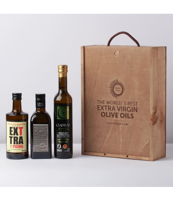 Se presenta en una elegante caja de madera que incluye 3 botellas de 500 ml. y un diploma acreditativo del premio.