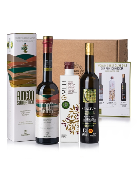 Se presenta en una elegante caja de cartón que incluye 3 botellas de 500 ml. y un diploma acreditativo del premio.