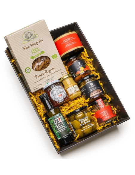 La caja sorpresa Vegana de Oliva Oliva incluye al menos una botella de aceite de oliva virgen extra premium y una cuidada selección de productos gourmet 100% veganos de las mejores marcas.