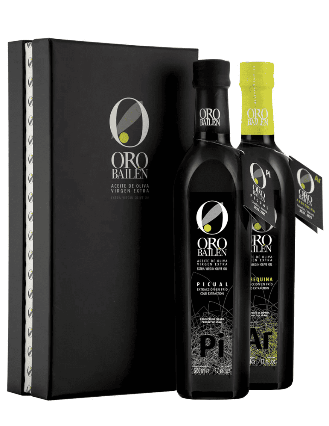 Estuche con dos botellas de 500 ml: Picual y Arbequina.
