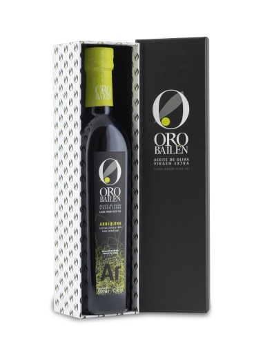 Aceite de Oliva Virgen Extra Arbequina - una aceituna excepcional con aromas delicados. Se recomienda su uso en platos fríos, templados o calientes para resaltar sus compuestos fenólicos y su aroma.
