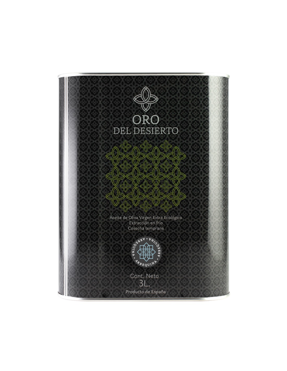 Aceite de oliva virgen extra de Tabernas (Almería), elaborado con la variedad de aceituna Arbequina.