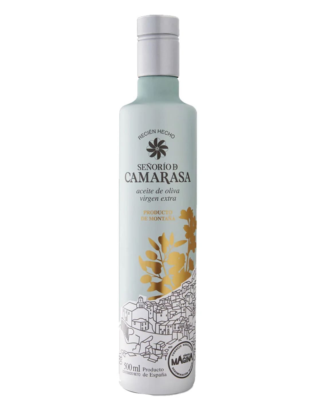 Este aceite de oliva virgen extra "Recién Hecho" se obtiene en octubre y es el resultado de un minucioso proceso de selección de los mejores olivares de montaña de la comarca de Sierra Mágina. Es único por su alto contenido en polifenoles, vitamina E y ácido oleico. Cuenta con el sello de calidad que le aporta la Denominación de Origen Protegida Sierra Mágina.