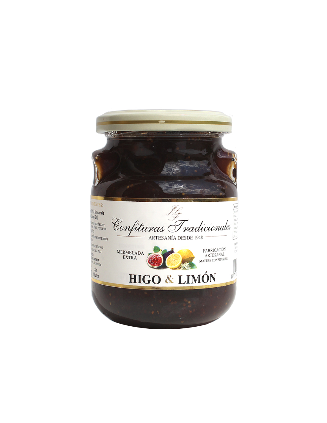 Cette recette est élaborée uniquement avec les meilleures figues violettes de la région de Murcie, mettant ainsi en valeur la richesse de cette terre. Équilibrée par une touche de citron, cette confiture contient des figues entières, confites dans leur propre sirop. Un délice à déguster à la cuillère, ou en accompagnement du foie.