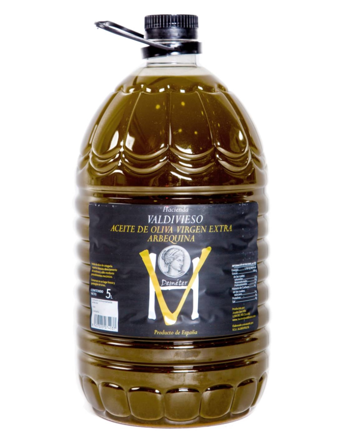 Huile d'olive vierge extra non filtrée élaborée à Lora del Río (Séville) à partir d'olives de la variété Arbequina.