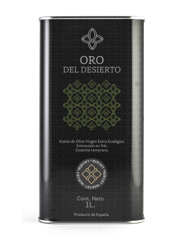 Huile d'olive vierge extra biologique élaborée à Tabernas (Almería) à partir d'olives de la variété Lechín récoltées au début de la véraison.
