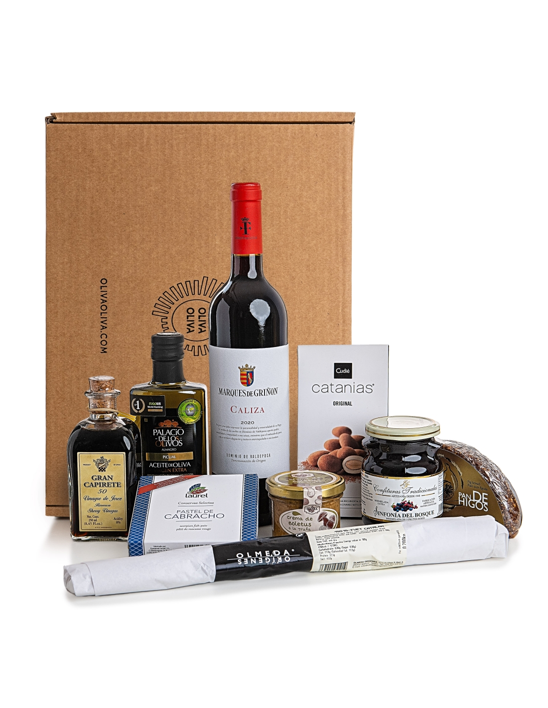 Le panier gourmand Premium Oliva Oliva comprend un assortiment exquis d'huile d'olive vierge extra, de vin, de charcuterie, de conserves et de sucreries de première qualité. Il est présenté dans un coffret exclusive en édition limitée au design très attrayant, ce qui en fait un excellent choix pour un cadeau.