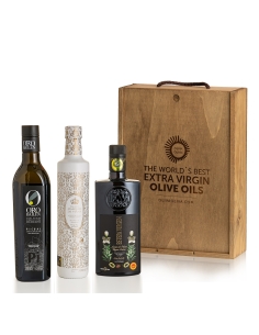 Présenté dans un élégant coffret en bois comprenant 3 bouteilles de 500 ml. et un diplôme certifiant le prix.