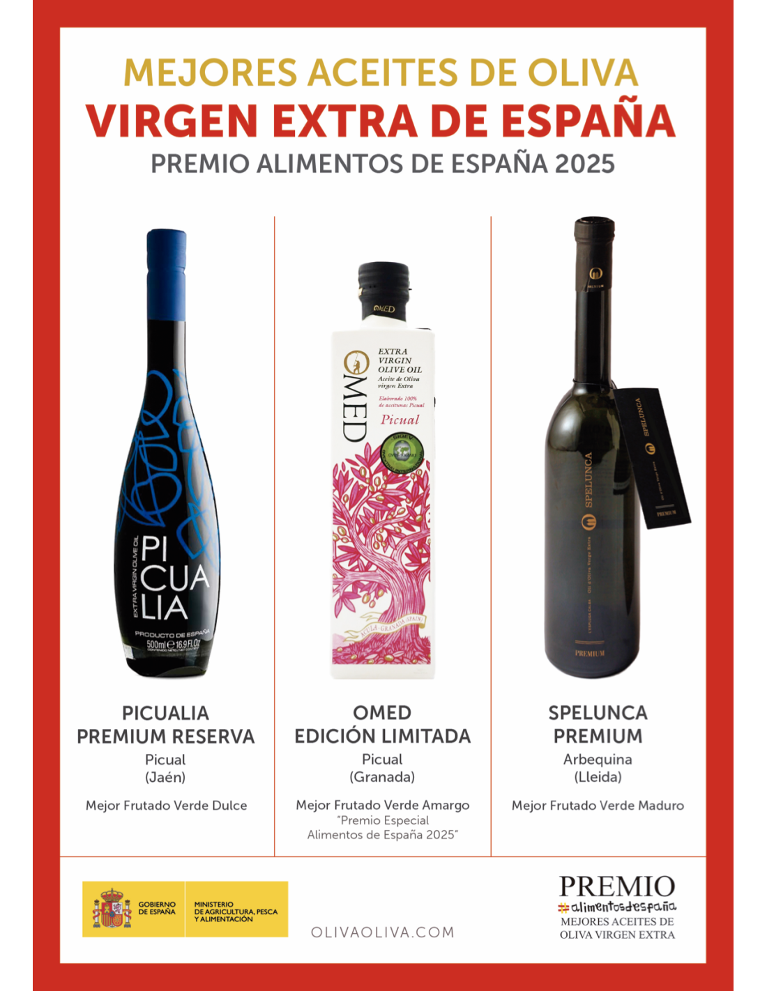 Il récompense les meilleures huiles d'olive vierges extra espagnoles dans trois catégories : Meilleur fruité vert amer, Meilleur fruité vert doux et Meilleur fruité mûr. L'huile qui obtient la note totale la plus élevée reçoit le prix spécial Alimentos de España de la meilleure huile d'olive extra vierge.